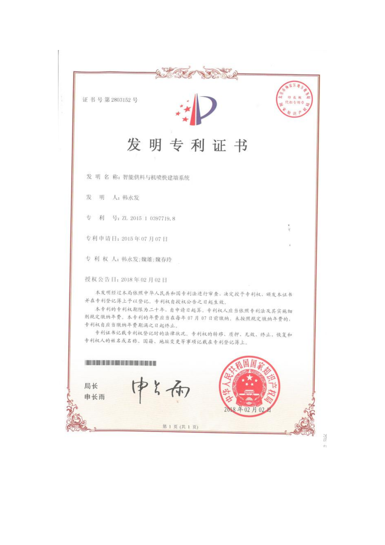 智能供料與機噴快建墻系統(tǒng)-發(fā)明專利(韓永發(fā))