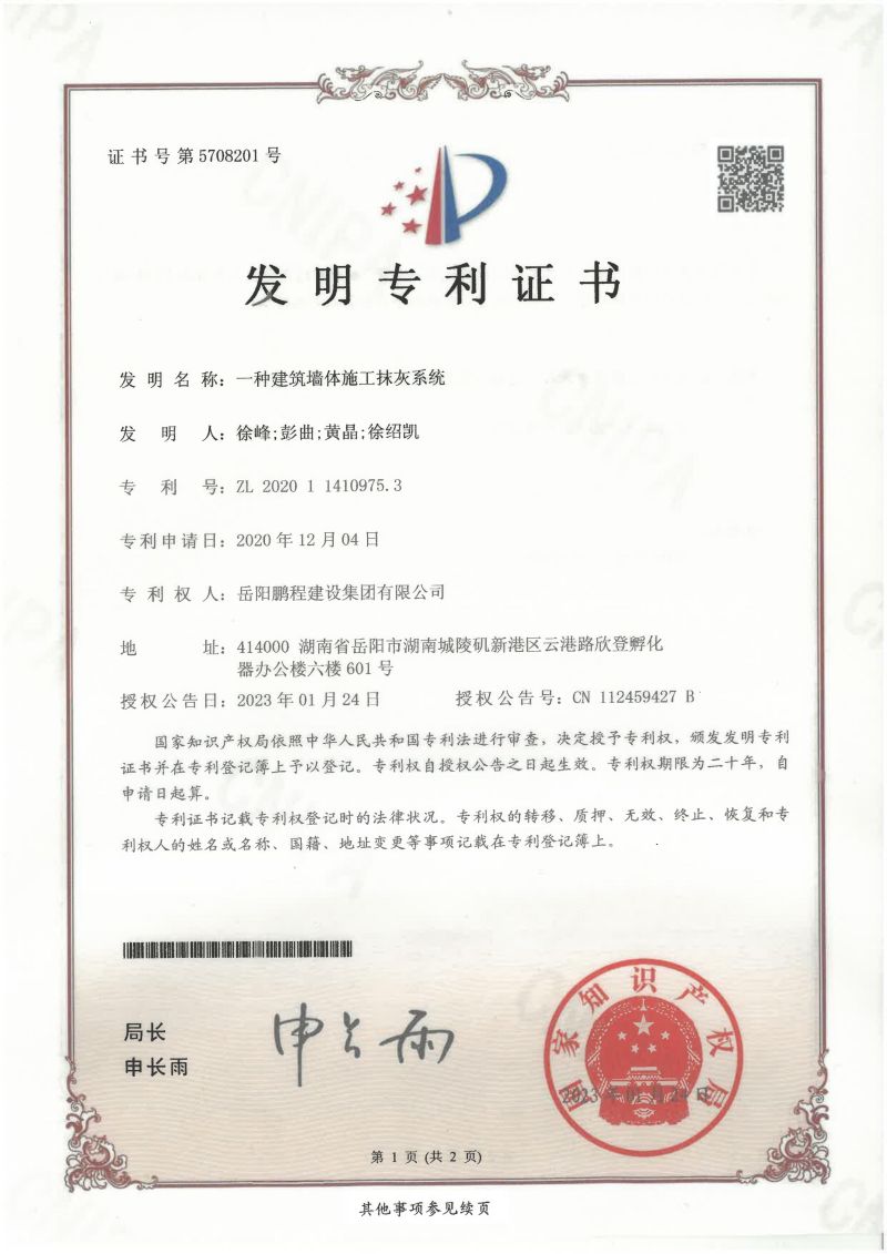 下一篇:一種地基建筑砂漿注入設備-發(fā)明專利證書(徐峰、徐紹凱、彭..