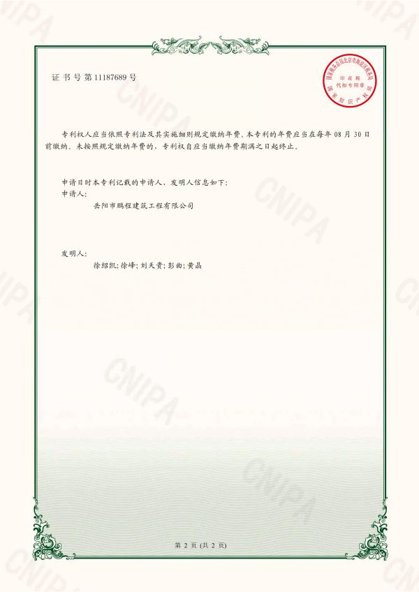 一種塔吊小車牽引輪保護(hù)裝置-實(shí)用新型專利證書(徐紹凱、徐峰、劉天貴、彭曲、黃晶)